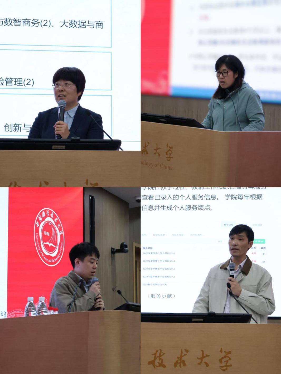 下午的培训聚焦学院各项工作政策与实操指南,多个行政部门负责人及业务骨干依次登台分享。人才引进与服务办公室副主任王红玉围绕师风师德建设核心要求与人事管理关键政策进行详细解读;学院办公室副主任陈静雪介绍了国际合作相关工作的资源与流程;科研秘书宋捷讲解了科研项目申报、经费使用等科研支持政策;本科生教学部刘璐、研究生教学部邓河、MBA 教学主管刘红梅分别针对不同层次教学管理工作的重点、流程与要求进行了全面介绍;党务专员张宇梳理了党籍和党员组织关系管理的相关规定;网络信息管理专员束张青演示了管理信息系统的操作方法与实用技巧。一系列精准务实的讲解,为新进教职工快速适应工作岗位提供了全方位的指导。