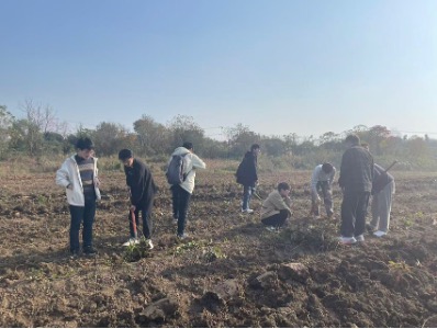 大家在挥洒汗水中共同参与红薯采挖劳动。这种“沾泥土、冒热气”的实践教育,让师生党员们直观地感受到了乡村振兴战略落地的现实意义与广阔前景。