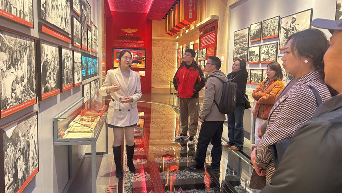 活动伊始,中国科大管理学院智库主任刘兵兵,专业学位办老师吴晖以及管理学院校友会建设分会副会长吴晓昊(EMBA16级)等人在中铁四局管理研究院相关人员的陪同下,先后参观了中铁四局抗美援朝纪念馆、党建文化馆以及企业展览馆。