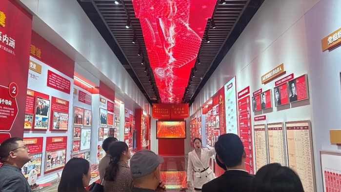 随后,大家走进了中铁四局的党建文化馆。文化馆内,通过丰富的图文资料、现代化的展示手段,全面展示了中铁四局在党的建设、企业文化、社会责任等方面的成就与特色。大家深入了解了中铁四局如何将党的建设贯穿于企业发展的各个环节,如何以党建促生产、以党建谋创新,使党建工作成为企业核心竞争力的重要组成部分。这不仅彰显了国有企业的政治担当,也为其他企业在党建工作方面提供了有益的借鉴。