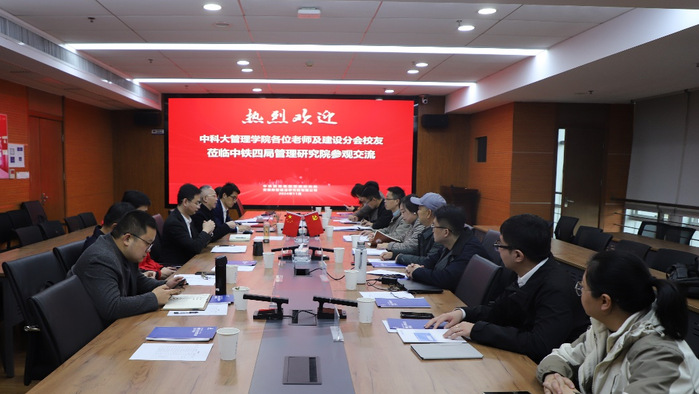 11月26日下午,中国科学技术大学管理学院的老师们及管院校友会建设分会的校友齐聚一堂,共同前往中铁四局管理研究院进行参观交流。此次活动旨在加强校企合作,促进学术交流与实践经验的深度融合,更为知识共享、经验交流搭建宝贵的平台,在企业与学术机构的互动中留下了浓墨重彩的一笔。