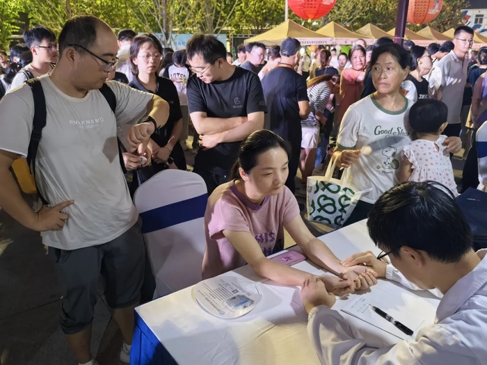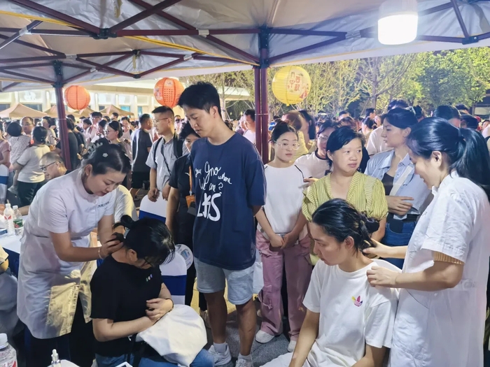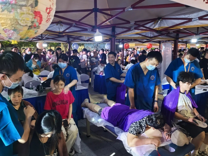 名老中医现场义诊、中药茶饮品鉴、常见药材辨别、中医特色理疗体验、中医养生功法表演……医护人员们变身夜市“摊主”,送上健康服务,把传统中医药文化融入市民“夜生活”。