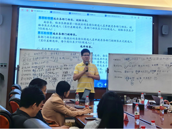 选举分为线上投票和线下投票两个环节组成。14:00-15:00线上投票采用腾讯会议的形式,共有100位校友参与投票,从30位执委会候选人中选出20位(末位淘汰制)。线下投票由新一届执委会候选人共20人在中国科大国际金融研究院4号楼313会议室进行。