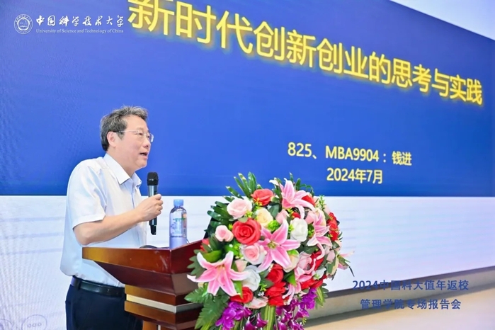 最后,825、MBA9904校友,安徽创谷股权投资基金管理有限公司董事长钱进带来《新时代创新创业的思考与实践》的分享。他指出当今中国正处于百年未有之大变局,产业创新系统正在形成,国家创新效率日益提高。个体奋斗需融入国家战略,金融应服务实体经济。合肥作为创新要素聚集地,有希望孕育颠覆性技术与产业。谈及对年轻创业者的建议,他强调创业需谨慎,不能简单模仿,要反思自身独特之处,建立自己的根据地与护城河。