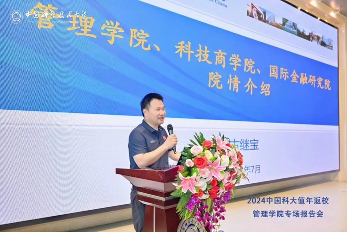 首先,古继宝对校友们的到来致以热烈的欢迎,并对管理学院、科技商学院、国际金融研究院的总体情况进行介绍。管理学院依托管理科学系、工商管理系、统计金融系打造“数智+”的科研特色,产出商务智能、创新创业、智慧金融体系课程,与国际金融研究院互动,推出智库、孵化器等解决方案,形成教产研相结合的一体化融合体系。科技商学院是省市校共建的二级院系,依托科大力量、多学科协同,培养懂科技、懂产业、懂市场、懂资本、懂管理的复合型科技产业组织人才,以解决科研成果转化共性难题,形成科技产业组织学的“科大流派”。希望校友多关注科大的产业孵化,以实现技术、产业、投资间的相互赋能。