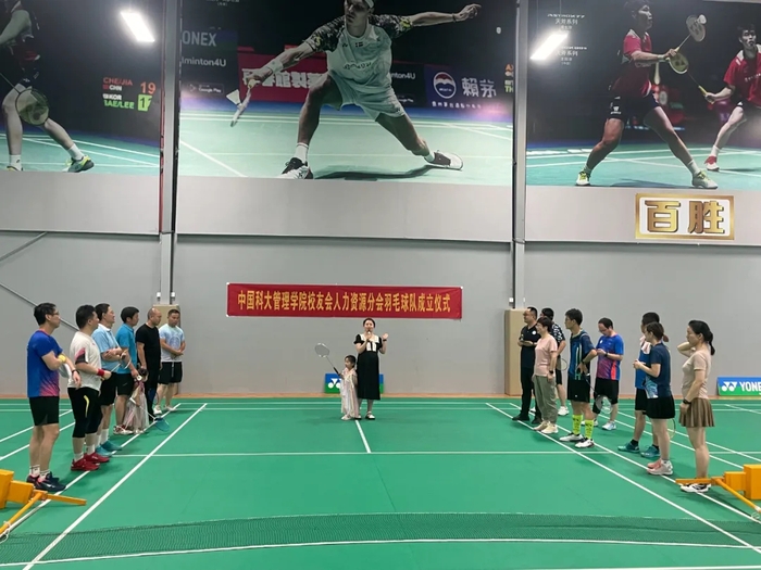 6 月 30 日上午,“中国科大管理学院校友会人力资源分会羽毛球队成立仪式”于包河区百胜羽毛球馆举办。众多嘉宾莅临现场,包括中国科大管理学院校友办主管老师刘采一、安徽省 MBA 联谊会执行主席张学武先生、中国科大管理学院校友会人力资源分会会长江传群女士等。活动由秘书长章杨主持。