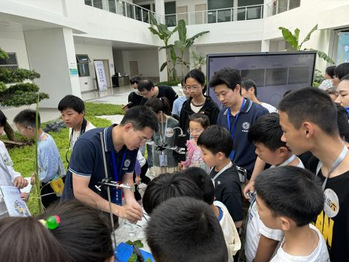 活动当天,共设置了4个科普点和18个科普位,吸引了来自苏州及周边地区的6支学生队伍参与,参与人数多达600人次。每个科普点都通过生动的展示和互动体验,向参观者传递了科学的魅力和价值。例如,亲民楼科普点则通过展示叶片上的舞蹈、水资源保护与利用等内容,让观众感受到自然科学的趣味性,激发了科二代们无限的兴趣,活动过程中,小朋友不断向志愿者进行提问,我们的志愿者也是耐心的为小朋友解答每一个问题。