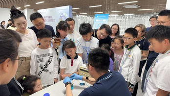 进入明德楼之前,小朋友们都争先恐后打卡盖章,随后领队商荣亚老师在一楼展厅向大家详细介绍了中国科大苏州高研院的现状和发展规划,让我们对高研院的发展更加期待。然后小朋友开启了明德楼科普点的探险之旅。明德楼科普点则通过多模态诊疗工程实验室、MIRACLE 实验室深刻展现了现代医疗科技的飞速进步和无限可能。每一个科普位都吸引了大量观众驻足观看,亲手体验。这些展示不仅让人们感受到了科技的魅力,更激发了大家对未来科技的无限遐想,也在小小“科二代”心中种下了科技的梦想。
