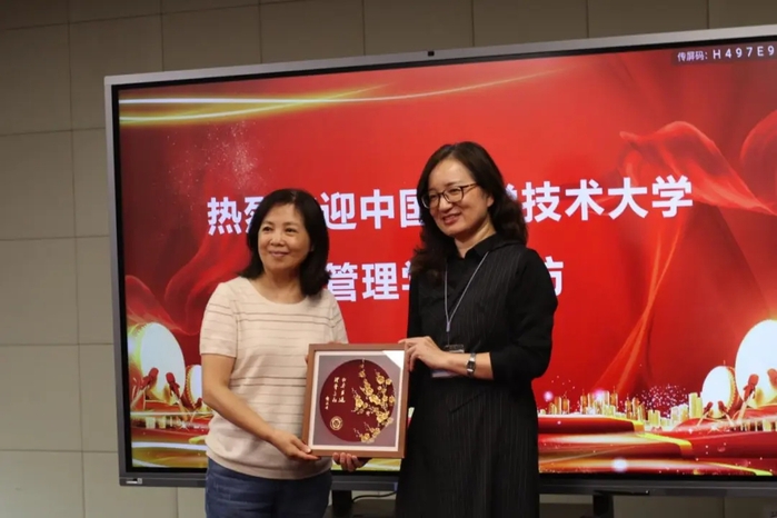 中国科大管理学院工商管理系副主任、EDP中心副主任曹崇延副教授代表参访师生首先感谢了腾讯集团的热情接待。她提到,科大管理学院作为国内一流的管理学院,一直致力于培养具有全球视野、创新精神和领导能力的优秀人才。学院在学术研究、企业合作和社会服务等方面都取得了显著的成果。随后,曹崇延副教授代表科大管理学院向腾讯集团赠送了精心准备的纪念品,并表示科大管理学院将以此次参访为契机,进一步加强与腾讯集团的交流合作,共同推动科技创新和社会进步。
