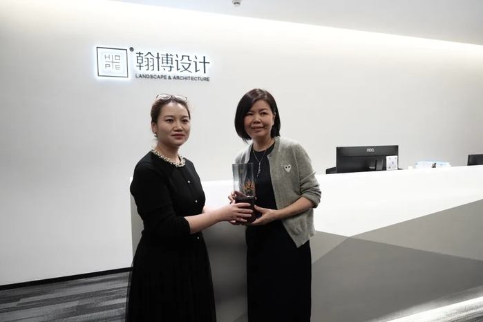 姚宁樱校友带领大家参观了翰博富有生活气息的办公环境,并给大家分享了她本人的创业经历——从新疆喀什拿到的第一个项目,到如今在深圳遍地开花。作为深圳首批专精特新设计企业,翰博设计现已成为深圳最具影响力的景观设计服务机构之一,深度参与中国前沿城市的景观实践。她秉持着“创作可持续并富有生命力的环境”的核心理念,已在深圳成功落地多个项目,包括深圳东部海堤重建工程(三期)、深圳海德三道景观提升、深圳腾讯总部(大铲湾岛)及未来项目、深圳大学校园景观提升项目等。