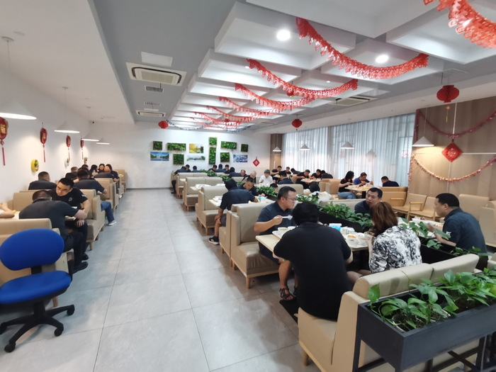 中午,师生一起在校园“星湖苑”小餐厅定制用餐,一桌桌边吃边叙,接着上午的话题。
