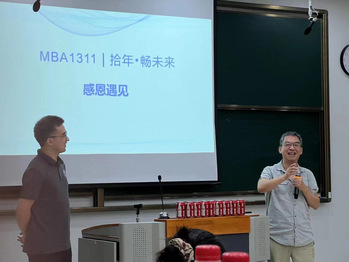2023年8月19日,MBA1311班迎来了“拾年-畅未来”10周年返校庆典活动。参加此次活动的成员有:校总部合肥来的嘉宾-缪柏其老师、张瑞稳老师、丁斌老师、黄攸立老师等,班主任王卫平老师和鞠洪云老师,以及合肥03级和04级两位校友。现场气氛浓烈,45位同学和嘉宾、老师,欢声笑语话“拾年”,听取汇报一片。