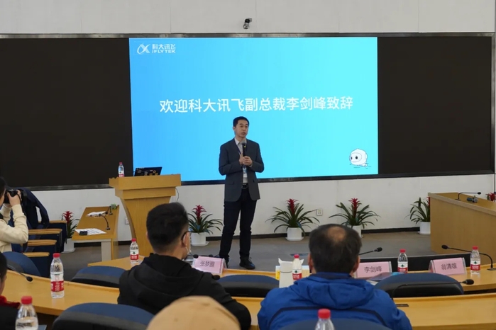 李剑锋代表科大讯飞对翁院长一行的来访表示热烈欢迎,并感谢管理学院对科大讯飞的信任。随后,他详细介绍了科大讯飞的发展历程、人工智能经历的三个阶段以及未来讯飞的发展战略。通过持续不断的科研投入,科大讯飞在医疗、教育、城市、工业等领域取得了很大进步,并在很多领域技术做到全球行业领先。他表示,科大讯飞在推进人工智能稳步前进的同时,始终坚持“让机器从‘能听会说”到“能理解会思考”,用人工智能建设美好世界”的历史使命。