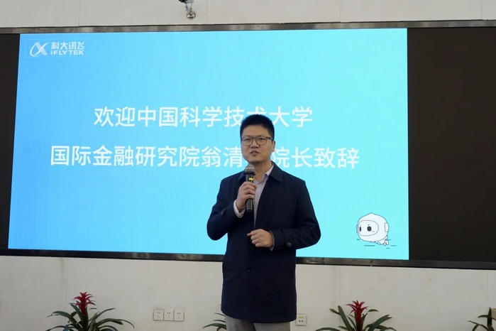翁清雄代表管理学院感谢了科大讯飞为本次活动所做的筹备和接待。接着,他从教学、科研、创新创业等三个方面为未来双方合作提出了期许。他期望通过联手打造精品课程、开发管理案例、突破技术难题、促进创新实践,让理论与实践相交融,为企业切实解决实际难题。同时,他鼓励科大学子充分利用好实践基地这个平台,做创新的引领者、创业的推动者和价值的传导者,用自己所学的知识和经验,为社会多做贡献。