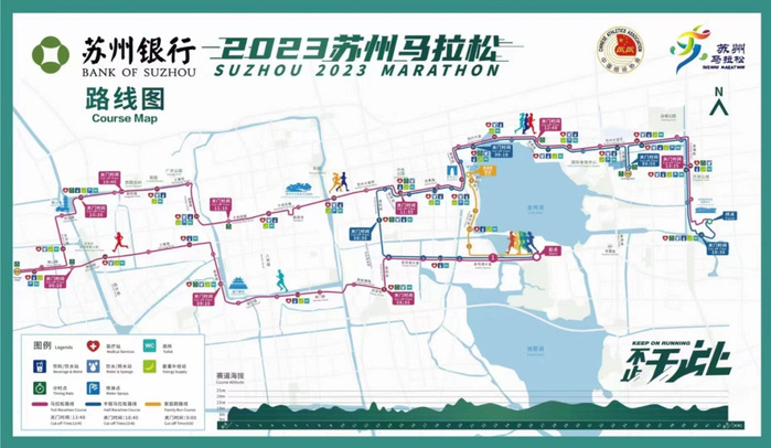 首届苏州马拉松设置了马拉松(42.195公里)、半程马拉松(21.0975公里)、家庭跑(4.2公里)三个项目。此次苏马赛道设置充分体现了穿越千年文脉、融古通今的特点,连接苏州工业园区、姑苏区、苏州高新区,沿途经过护城河、大运河、金鸡湖等重要水系,寒山寺、西园寺、平江路、东方之门等古今地标,石路、狮山、苏州中心、李公堤、圆融时代广场等繁华商业区,犹如一幅古今辉映的城市“双面绣”,徐徐铺陈,向跑友们展示苏州2500多年的悠久历史文化和“强富美高”的崭新图景。烟花三月下江南,现在正是江南最美的时刻,跑友们全程沉浸式奔跑在最美的江南春色中。