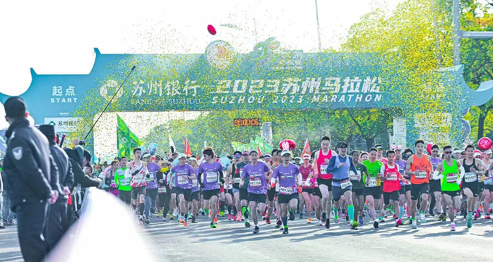 3月26日7时30分,苏州首届城市马拉松——2023苏州马拉松正式鸣枪开跑,来自全国各地的约25000名选手一同踏上融古通今的苏州赛道,畅跑锦绣江南,沉醉天堂苏州。