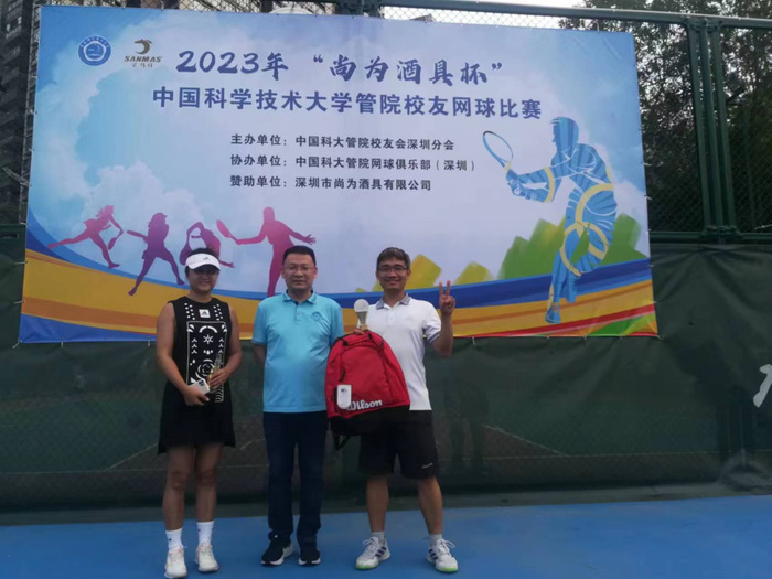 中国科大管院深圳网球俱乐部的校友们每周坚持1-2次固定时间(周五晚上、周末)打球。除了日常训练和不定期的组织小组赛外,年终还会发起一场年度比赛。本次年度网球赛事由管院校友会深圳分会江培强校友(SM0621)赞助。除了颁发奖杯外,获奖选手还会赢取现金大奖。冠军奖杯作为每年冠军轮庄,奖杯唯一,每届冠名刻印在奖杯上,次年年终比赛再拿回组织颁发给下届冠名得主,这让赛事更加隆重和有意义。