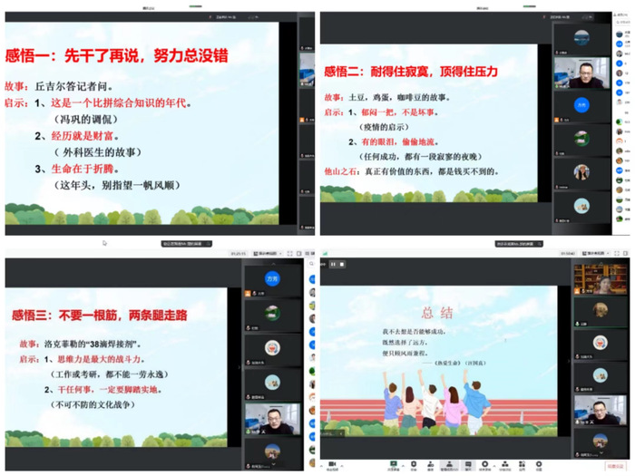 讲座过后,是总结是反思,在线同学纷纷表示这样的讲座很有必要多多举行。在当今疫情、工作、学业及家庭等多重压力下,心理健康教育与心理健康疏导显得尤为重要。通过柯博士的讲座,同学们对一些常见的心理问题有了初步的了解,并能够运用一些简单的方法进行自我调节。