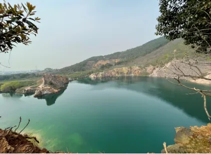 山重水复疑无路,柳暗花明又一村。在几近迷路时,大家邂逅了传说中的网红湖,极目远眺,如翡翠般的湖近在眼前。大家又一鼓作气,历时1个多小时,才到达湖边,近距离欣赏它的美。