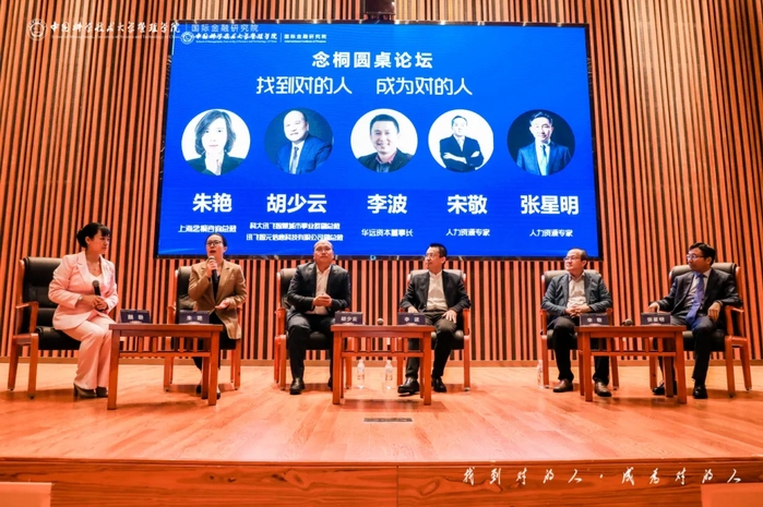 活动后半场由上海念桐企业咨询有限公司总裁朱艳,华远资本董事长李波,科大讯飞智慧城市事业群副总裁、讯飞智元信息科技副总裁胡少云,资深高级人力资源管理专家宋敬,知名实战派人力资源管理专家张星明五位“念桐圆桌论坛”的嘉宾做了专业分享。他们既有来自优秀企业的管理者,也有投行大咖,还有人力资源专家,大家纷纷从不同层面对“找到对的人、成为对的人”的内涵和实践进行了深入的解读。