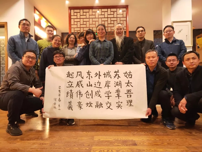 这是中国科大管院校友会苏州分会(后简称”苏州分会“)的校友们在本月”2019东山创坛“成立之际集体创作的一首诗。苏州分会特别邀请了苏州MBA创始人之一储雪林老师亲笔题字,四句诗词点明了东山创坛的成立意义,也映射了双创时代下科大学子谨遵校训、勇于创新的新面貌。