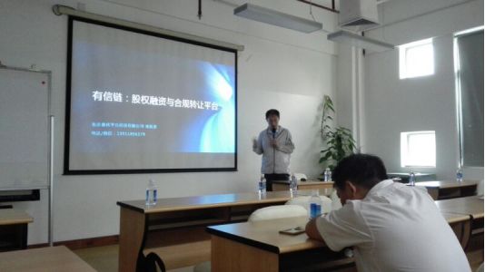 随后,从北京远道而来的校友徐松泉向大家分享他自己的一个创业项目--有信链。徐松泉是中国科大经济学学士,现任北京有信链科技CEO、北京量化平台科技CEO,曾任东软集团安全咨询部部长。至今已创业两年多。有信链则力图用新兴的区块链技术给中小企业提供一个合规股债权投融资及转让服务的SaaS平台。