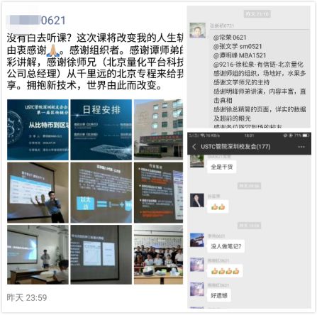 此次分享会反响强烈,甚至有参加的校友们反馈自己的人生的轨迹都将因此而发生改变,可以说获得了极大的成功。