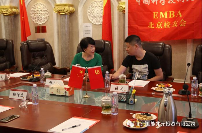 2018年5月12日,中国科大管院校友会北京分会走进北京国能兆元投资有限公司进行合作交流活动。此次走访以“弘扬石油精神,畅想清凉一夏”为主题。出席活动的有中国科大教学与管理部胡岳东主任、中国科大管院丁斌教授以及北京分会二十余位校友。