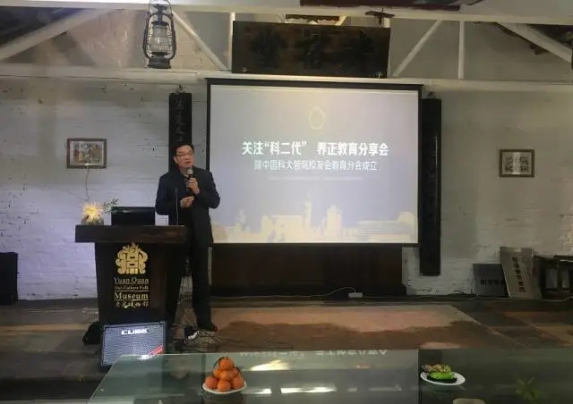 “最大的失败,就是培养孩子的失败”!2017年12月9日,中国科大管院党委书记刘天卓在“关注‘科二代’养正教育分享会暨中国科大管院校友会教育分会成立”上感叹道,他说:“科大有很多著名专家学者,在学术上都取得了较高的成就,但很多人在孩子教育上却存在很多困惑”。刘天卓书记自己也是“科二代”的一位家长,他坦言一遇到自己孩子的教育问题,也很迷茫和不淡定。对于孩子怎么教育,是关注学习?还是身心健康?还是品德教育?他都有很多困惑。因此,他认为成立中国科大管院校友会教育分会(以下简称:教育分会)是一件挺有意义的事,不仅对校友有益,对社会也有帮助。他认为教育分会是管理学院校友会中比较有特色的组织,希望教育分会成为一个有凝聚力、有战斗力、有品牌影响力一个组织,同时借助2018年的科大六十周年校庆机会,开展更多有意义的活动。