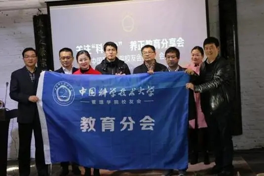 随后刘天卓书记和孔燕教授向教育分会的理事代表授旗授牌。中国科大管院校友会教育分会正式成立。