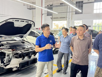 活动伊始,疏兴民陪同校友参观服务中心各功能分区,在电池维修间,他详细讲解新能源汽车电池维修技术,让校友们对电池维修环节有了更直观的认知。随后的座谈会上,刘蓓从公司发起初心、创始人介绍、项目优势及发展规划等方面进行全面介绍。