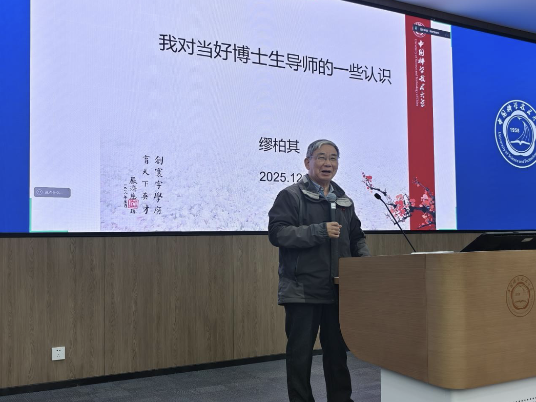 缪柏其先生以“我对当好博士生导师的一些认识”为题,结合多年育人经验,分享了他培养博士生的心得与方法。他强调,博士生导师不仅是一份荣誉,更是一份沉甸甸的责任,必须坚持以师德为本、以学术为基,不断提高自身认识。通过开设讨论班、拓宽学生视野、实施因材施教等多种途径,着力提升学生的科研能力与综合素养,切实履行“薪火相传”的使命。