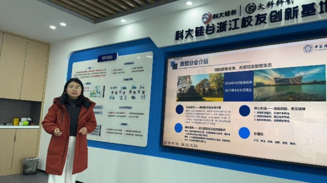 12月17日下午,硅谷大厦B座21层的路演厅内,气氛热烈。中国科大管理学院校友会数智分会(后简称“数智分会”)组织了一场以“数智赋能·共创未来”为主题的路演交流会。活动现场,共有10名校友代表介绍了他们的产品和服务,涵盖了工业机器人、空天卫星、企业数字化管理、数字园区建设、创新交易服务、教育等领域,将抽象“人脉”转化为具体“合作接口”。