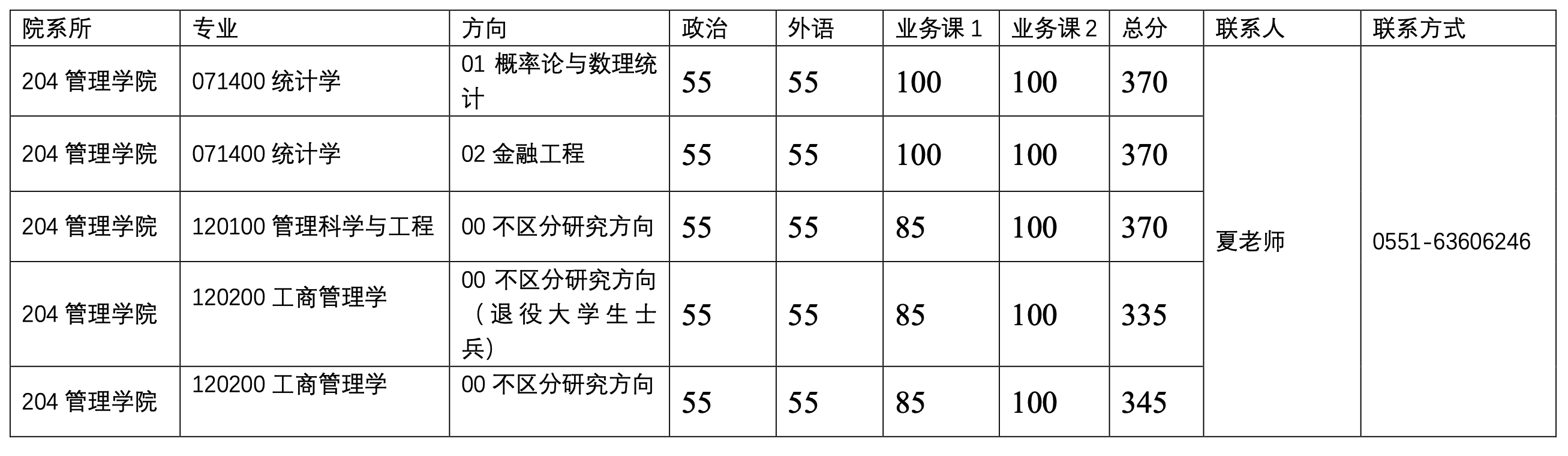 2026年中国科学技术大学管理学院学术硕士招生专业复试分数线